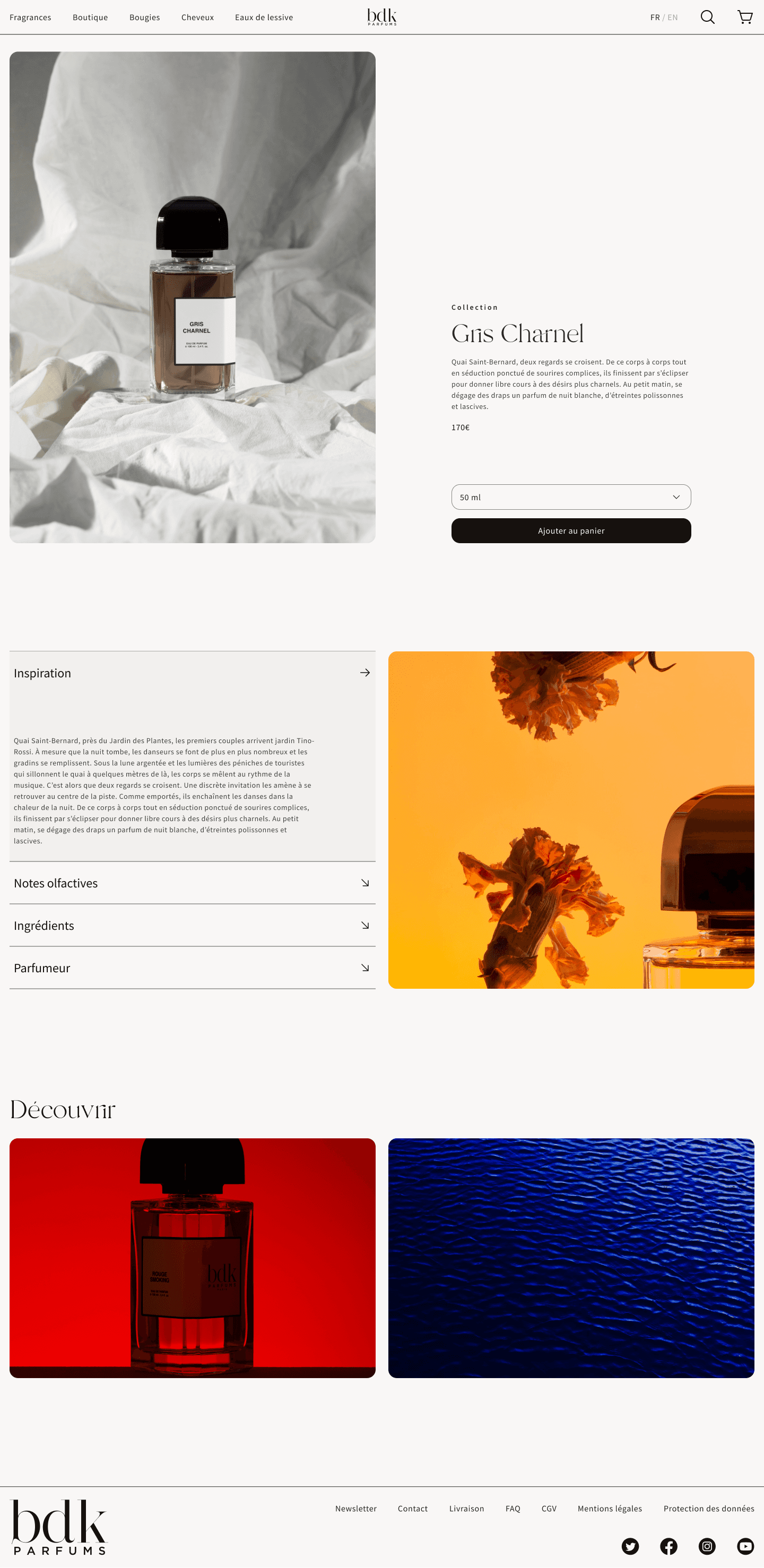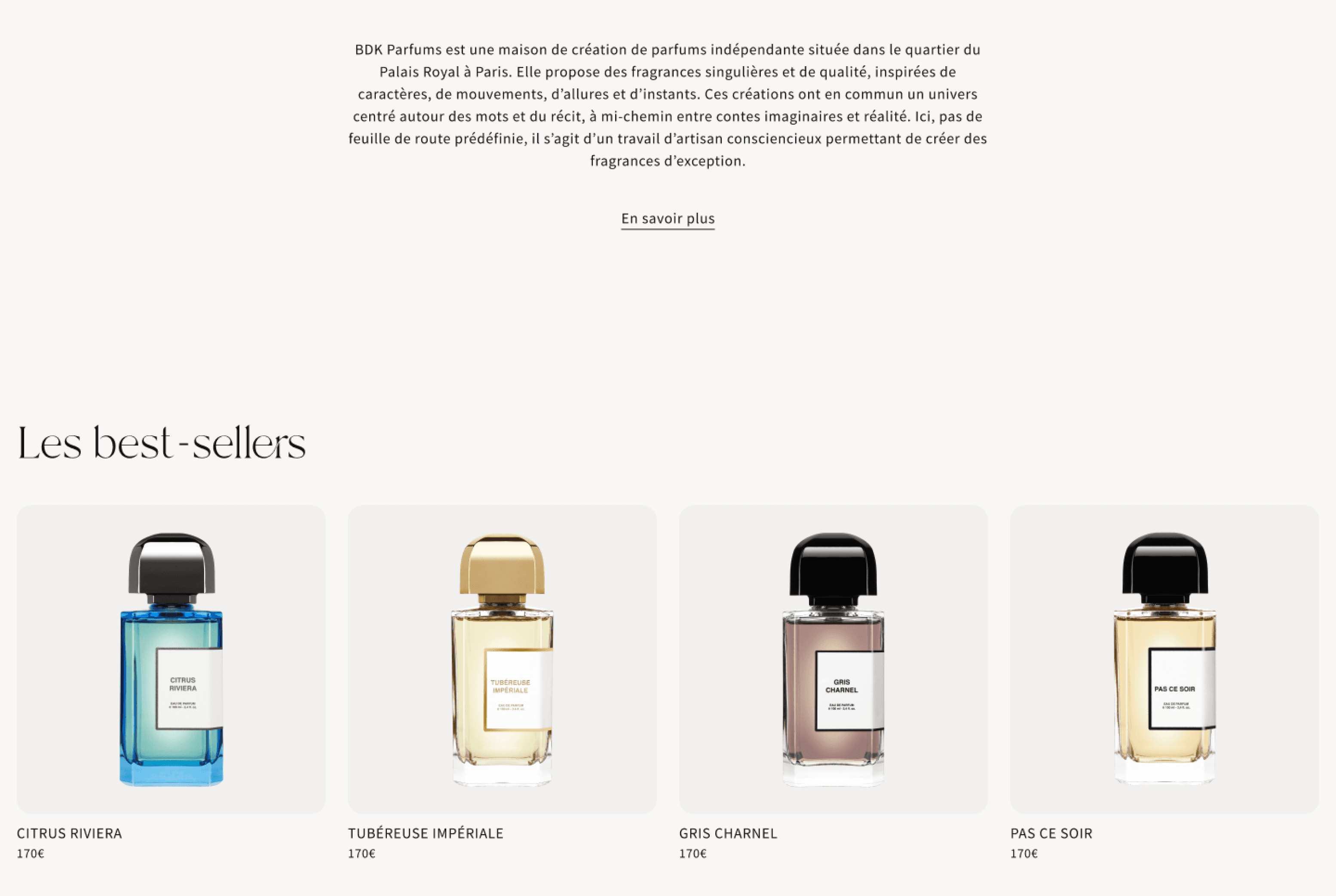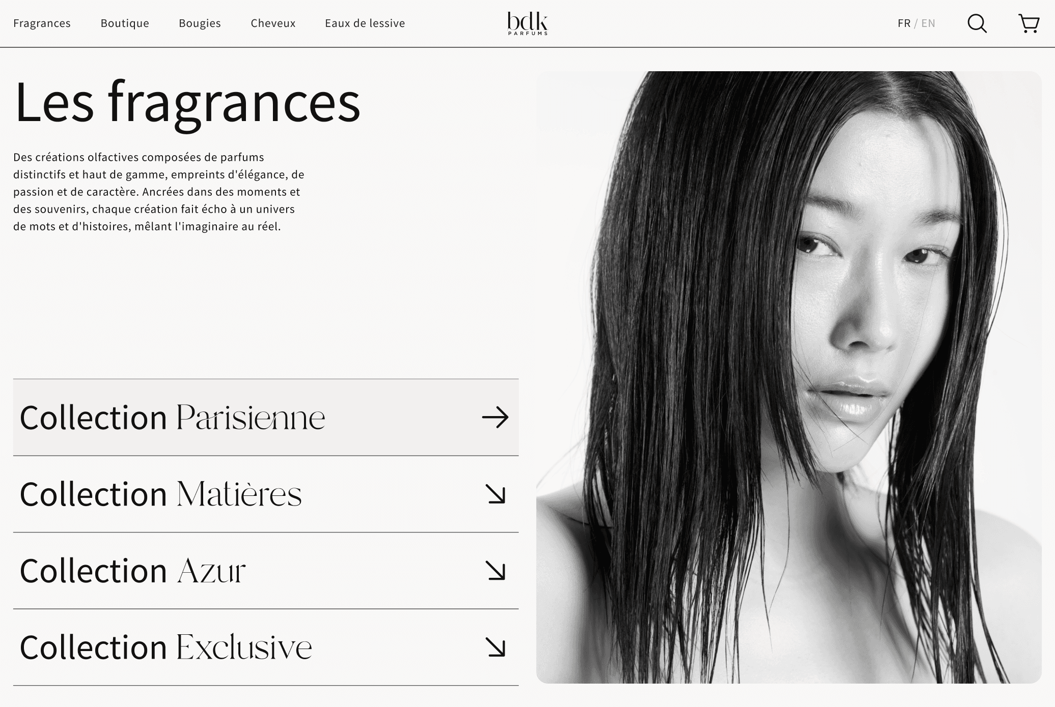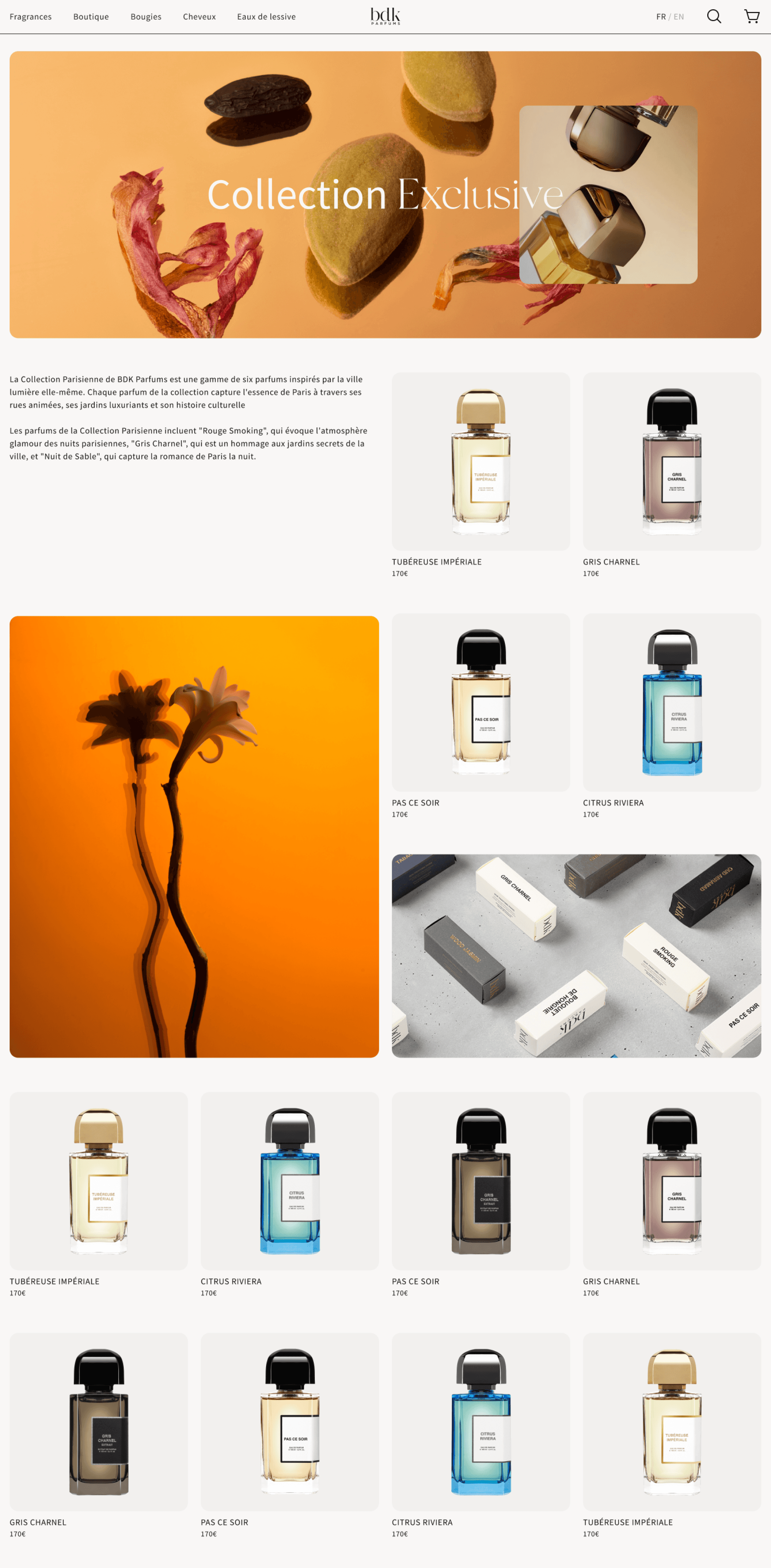 The new design positions BDK Parfums as a digital gallery of fragrance rather than a typical e-shop.