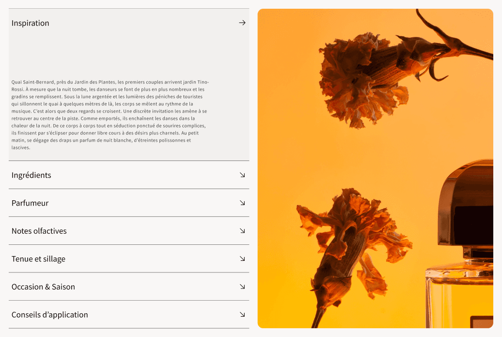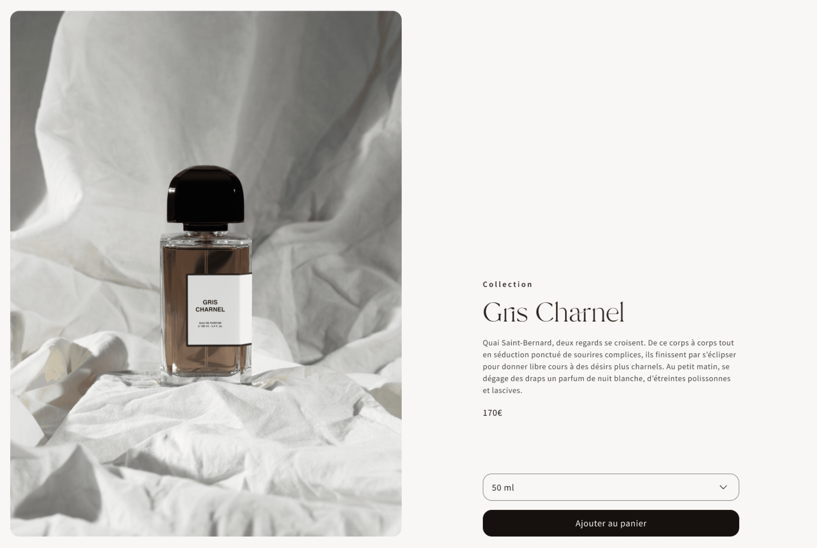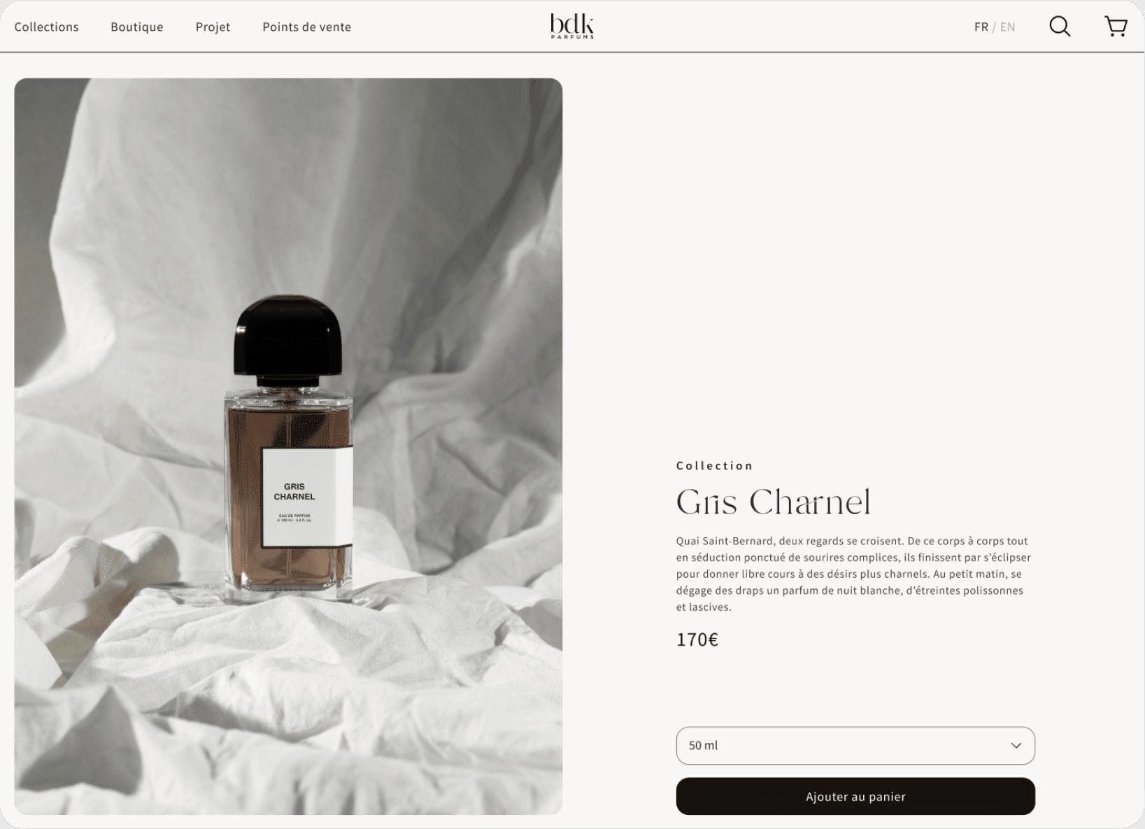 Product pages focus on scale, space and light, elevating each fragrance as an object of desire.